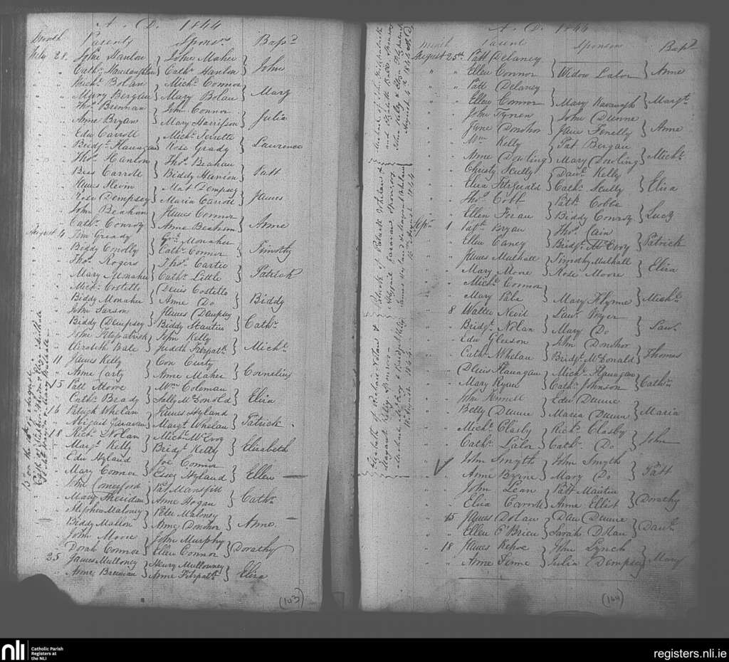 Portarlington; County of Laois, Offaly; Diocese of Kildare and Leighlin. Baptisms, July 1844 to Sep. 1844