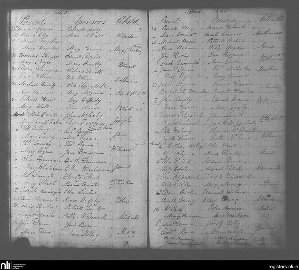 Portarlington; County of Laois, Offaly; Diocese of Kildare and Leighlin. Baptisms, Mar. 1845 to May 1845