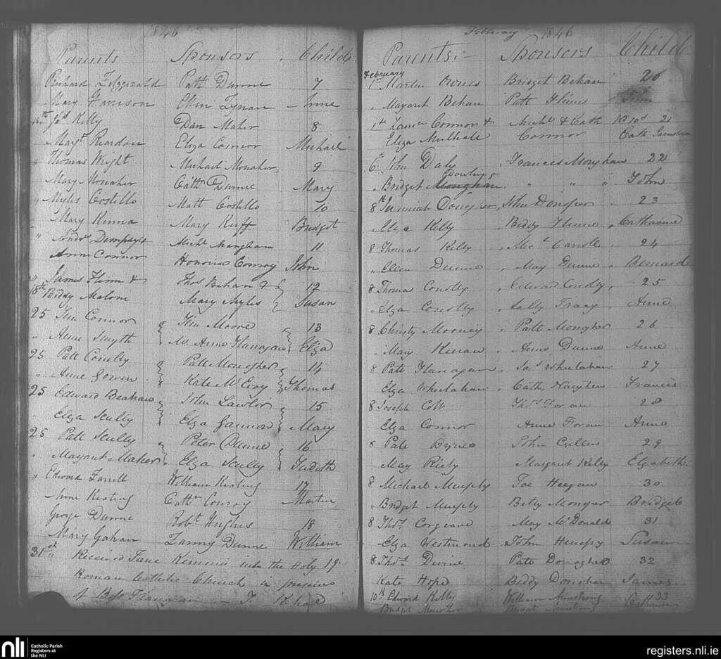 Portarlington; County of Laois, Offaly; Diocese of Kildare and Leighlin. Baptisms, Jan. 1846 to Feb. 1846