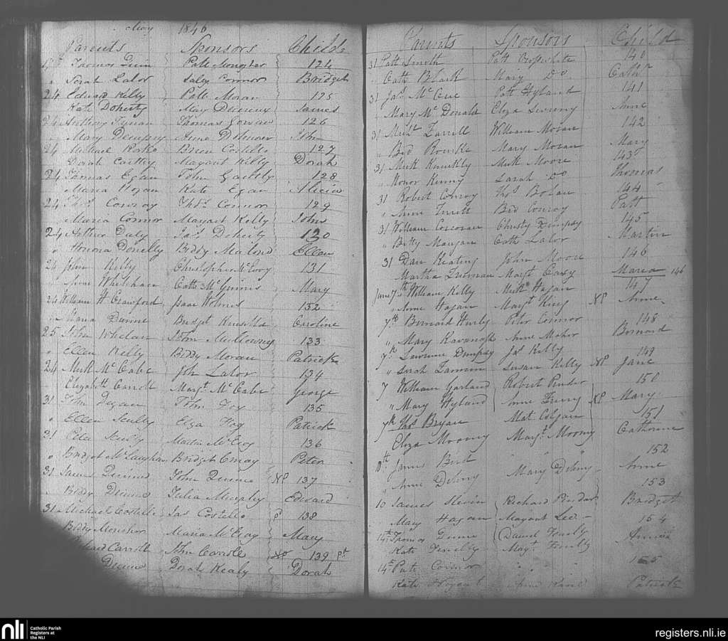 Portarlington; County of Laois, Offaly; Diocese of Kildare and Leighlin. Baptisms, May 1846 to June 1846
