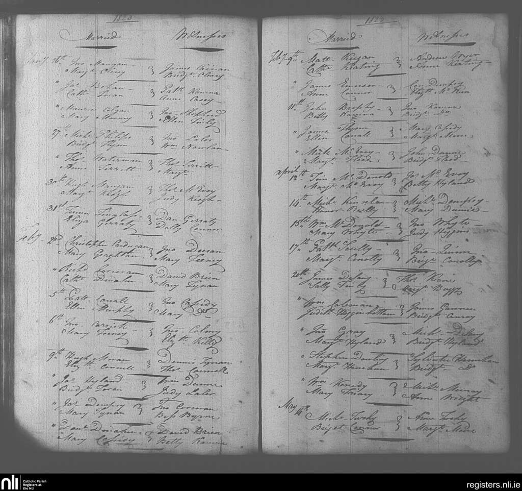 Portarlington; County of Laois, Offaly; Diocese of Kildare and Leighlin. Marriages, Jan. 1823 to May 1823