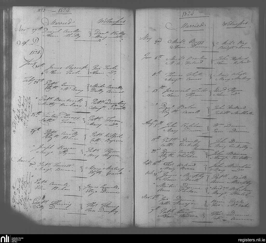 Portarlington; County of Laois, Offaly; Diocese of Kildare and Leighlin. Marriages, Nov. 1823 to Nov. 1824