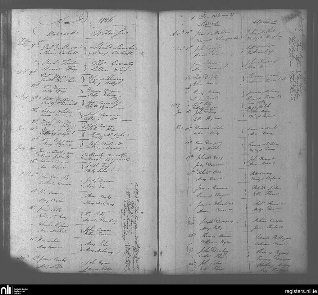 Portarlington; County of Laois, Offaly; Diocese of Kildare and Leighlin. Marriages, Feb. 1826 to Feb. 1827