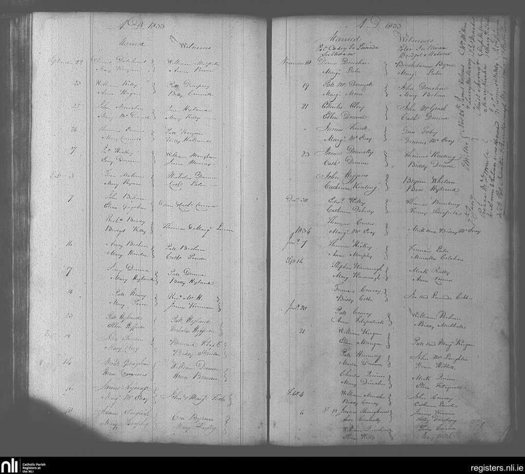 Portarlington; County of Laois, Offaly; Diocese of Kildare and Leighlin. Marriages, Sep. 1833 to Feb. 1834