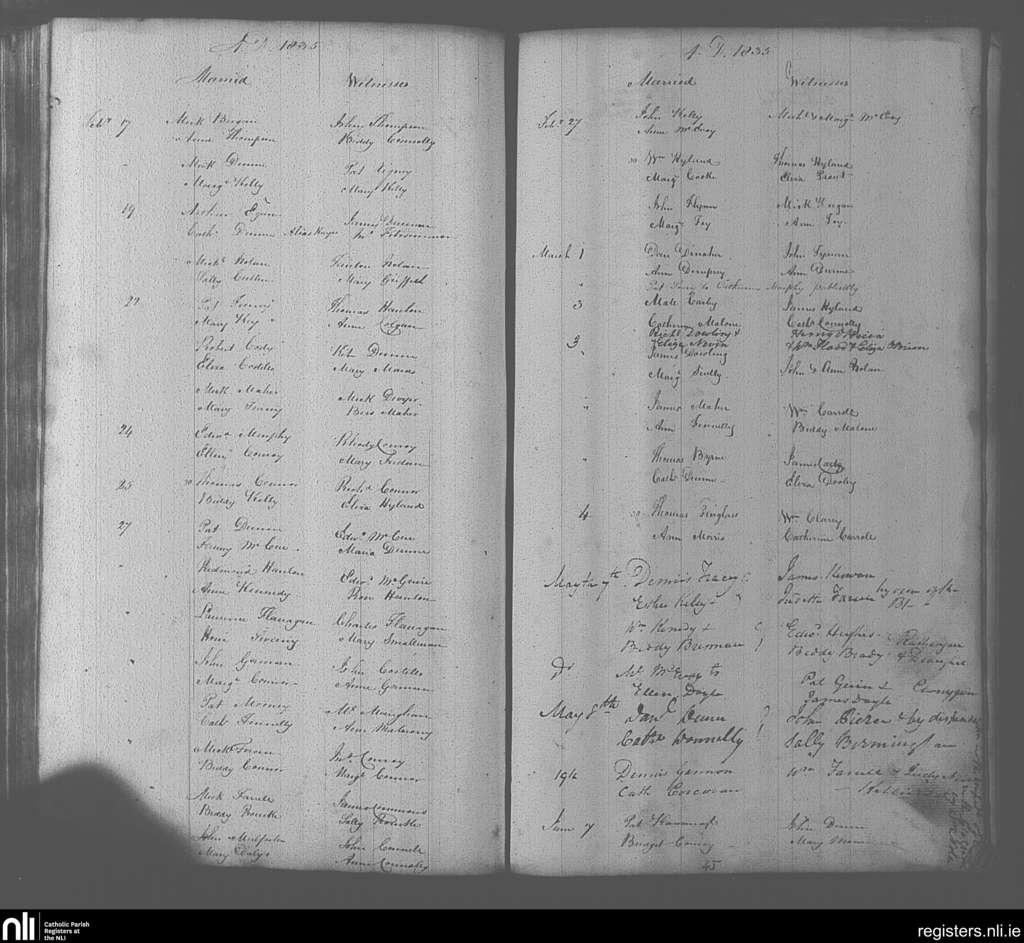 Portarlington; County of Laois, Offaly; Diocese of Kildare and Leighlin. Marriages, Feb. 1835 to June 1835