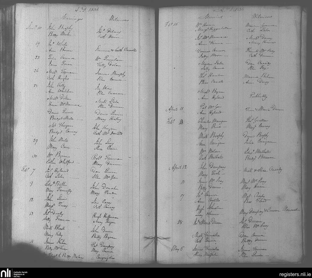 Portarlington; County of Laois, Offaly; Diocese of Kildare and Leighlin. Marriages, Jan. 1836 to May 1836