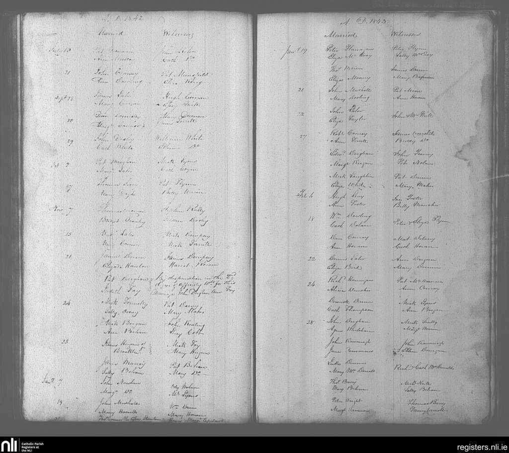Portarlington; County of Laois, Offaly; Diocese of Kildare and Leighlin. Marriages, July 1842 to Feb. 1843