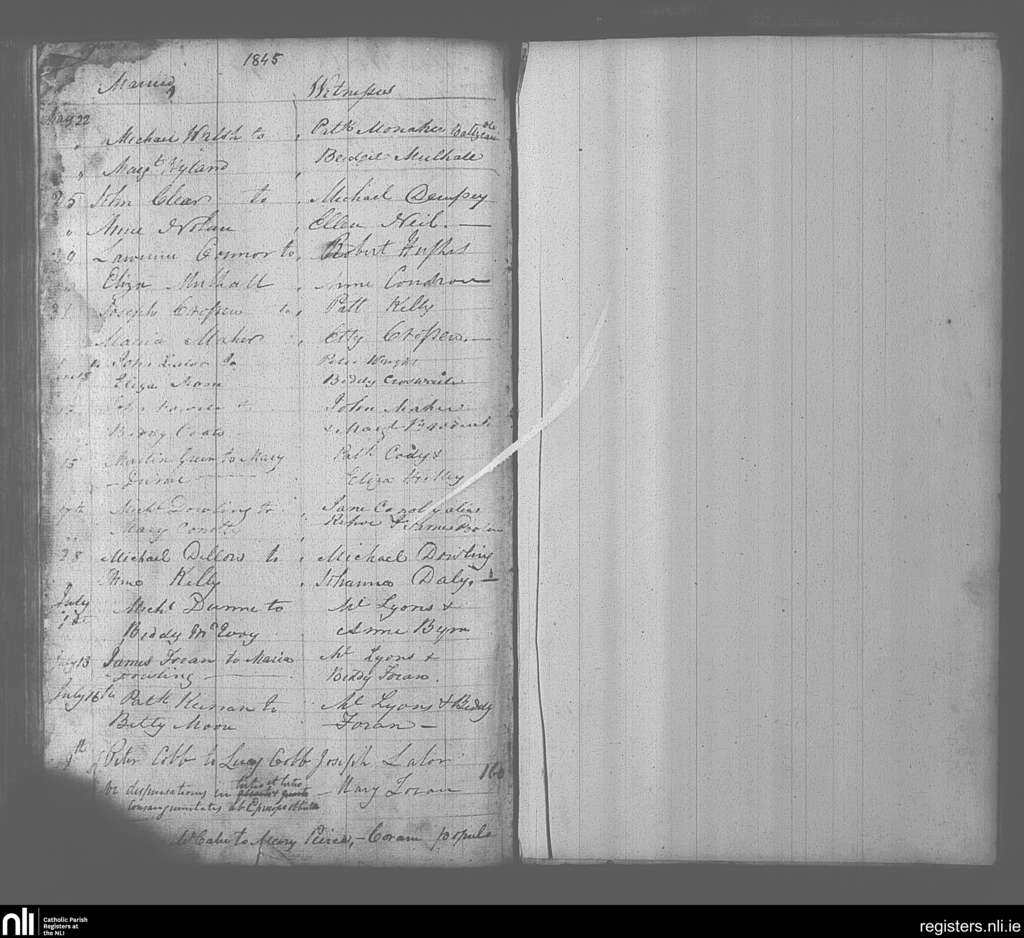 Portarlington; County of Laois, Offaly; Diocese of Kildare and Leighlin. Marriages, May 1845 to July 1845
