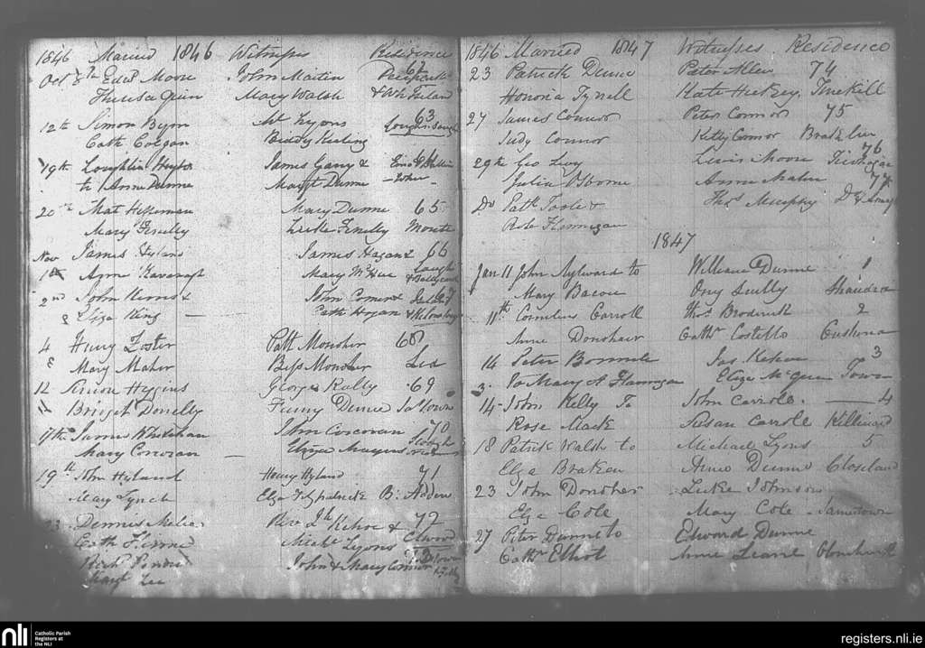 Portarlington; County of Laois, Offaly; Diocese of Kildare and Leighlin. Marriages, Oct. 1846 to Jan. 1847