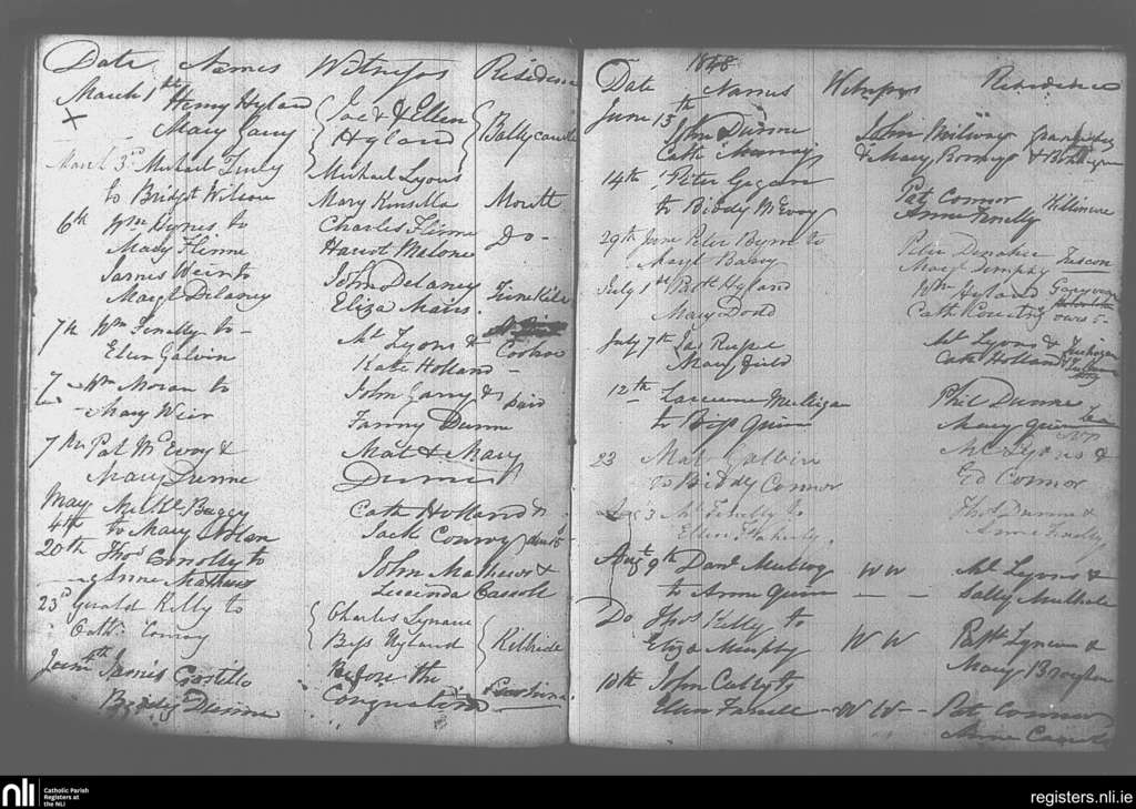 Portarlington; County of Laois, Offaly; Diocese of Kildare and Leighlin. Marriages, Mar. 1848 to Aug. 1848