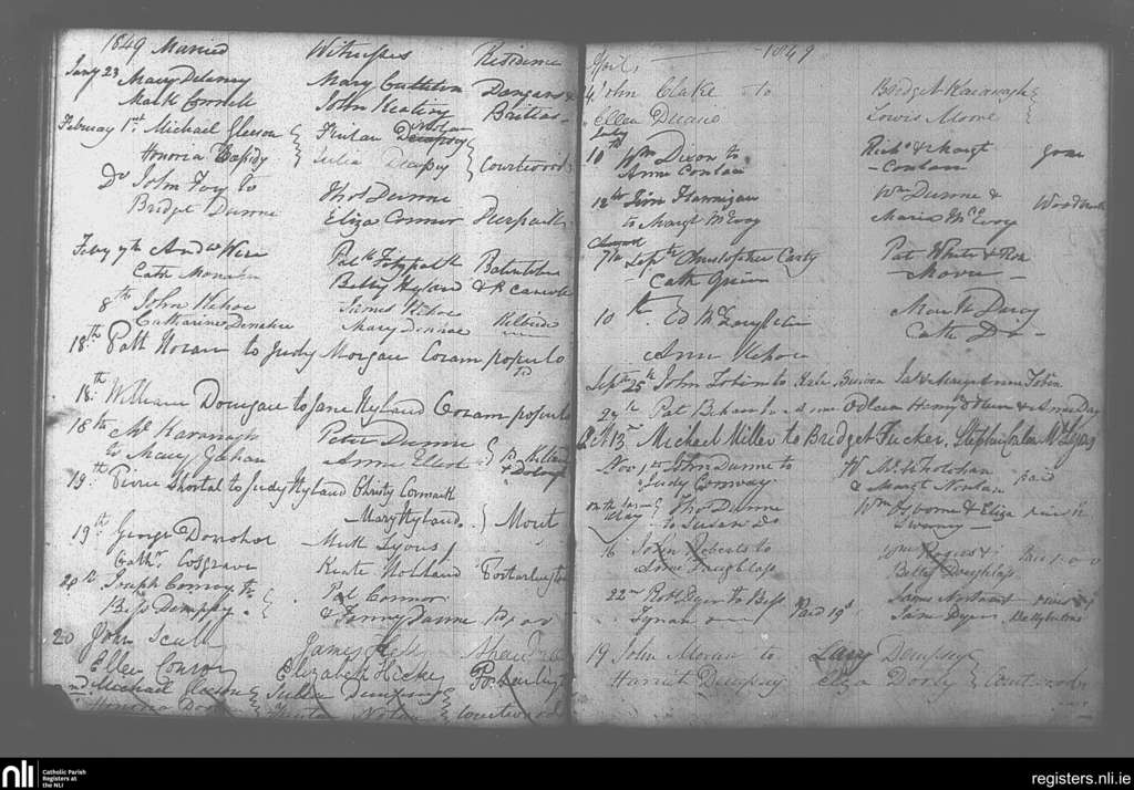 Portarlington; County of Laois, Offaly; Diocese of Kildare and Leighlin. Marriages, Jan. 1849 to Nov. 1849