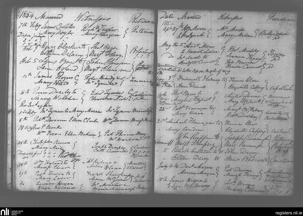 Portarlington; County of Laois, Offaly; Diocese of Kildare and Leighlin. Marriages, Feb. 1854 to July 1854