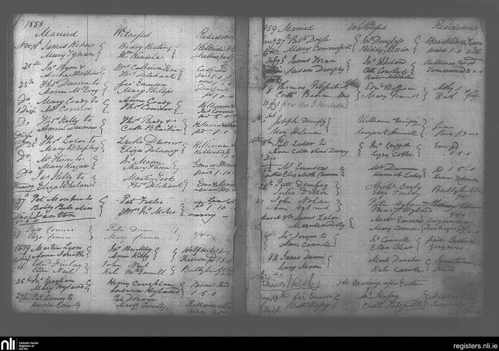 Portarlington; County of Laois, Offaly; Diocese of Kildare and Leighlin. Marriages, Nov. 1858 to May 1859