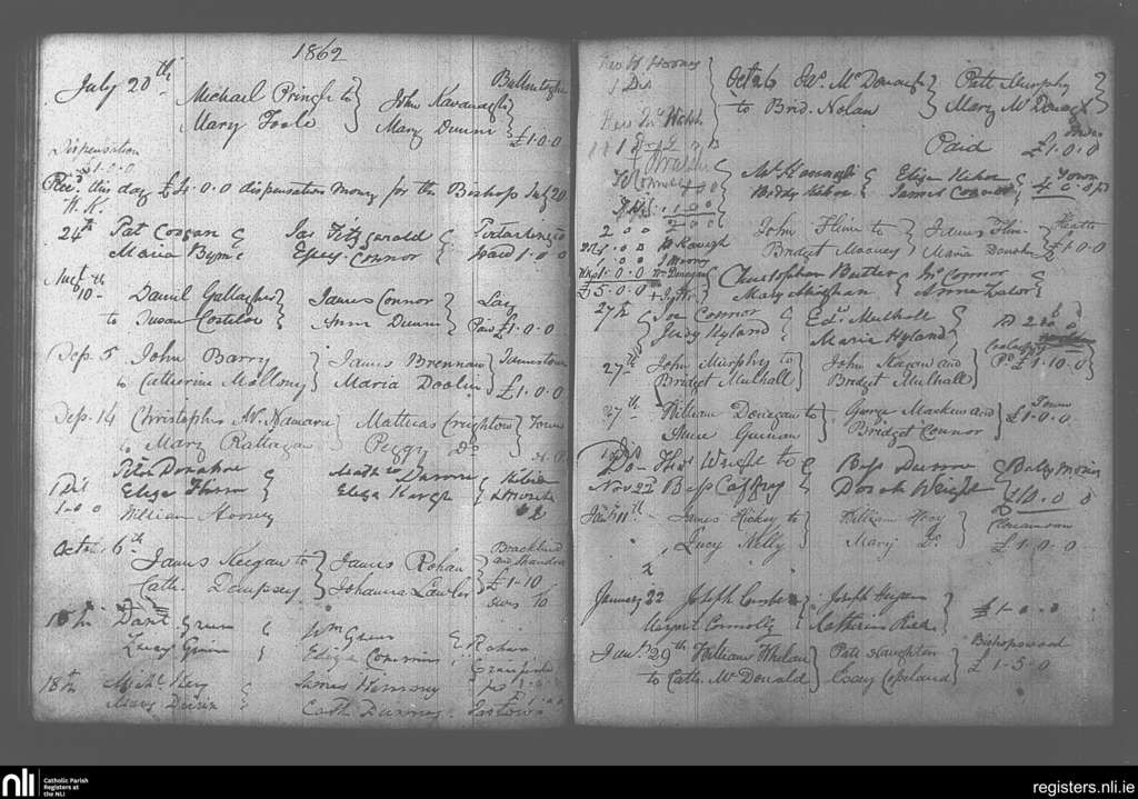Portarlington; County of Laois, Offaly; Diocese of Kildare and Leighlin. Marriages, July 1862 to Jan. 1863
