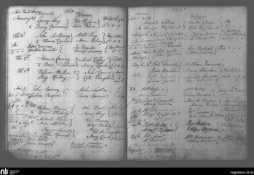 Portarlington; County of Laois, Offaly; Diocese of Kildare and Leighlin. Marriages, Jan. 1863 to June 1863