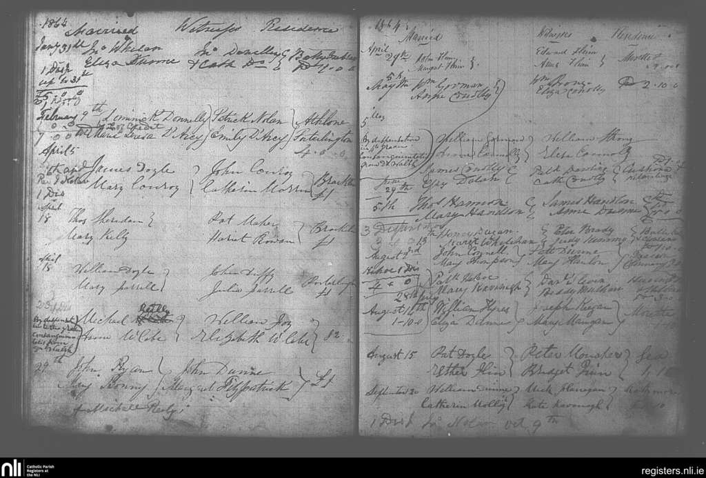 Portarlington; County of Laois, Offaly; Diocese of Kildare and Leighlin. Marriages, Jan. 1864 to Sep. 1864