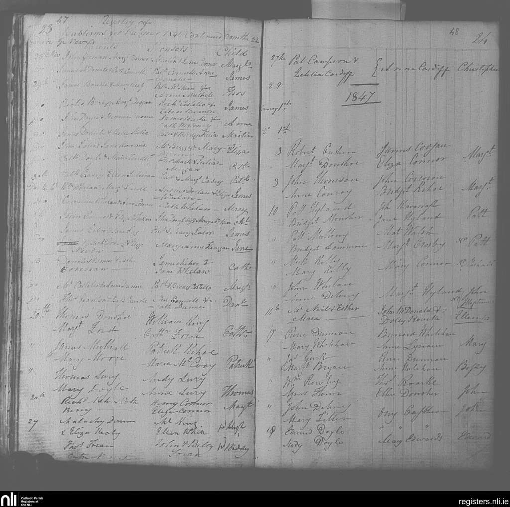 Portarlington; County of Laois, Offaly; Diocese of Kildare and Leighlin. Baptisms, Nov. 1846 to Jan. 1847