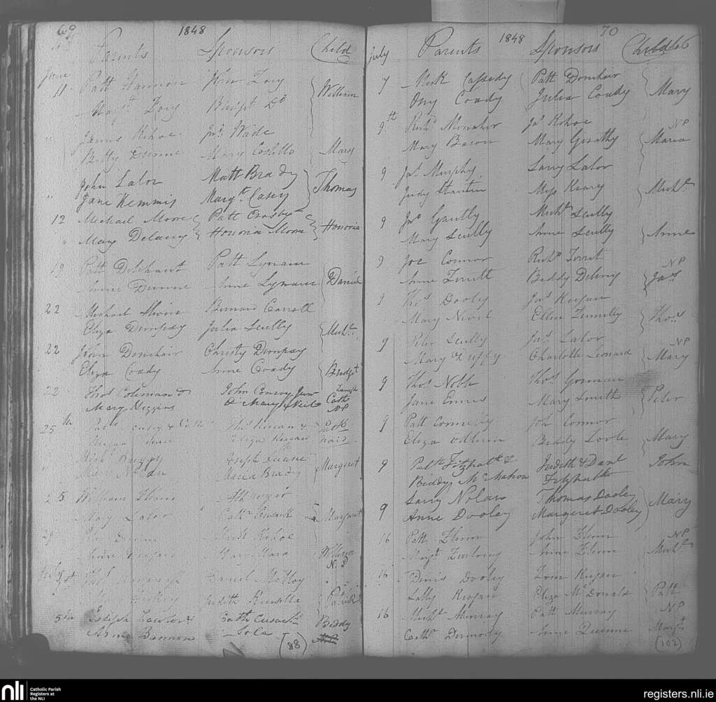 Portarlington; County of Laois, Offaly; Diocese of Kildare and Leighlin. Baptisms, June 1848 to July 1848