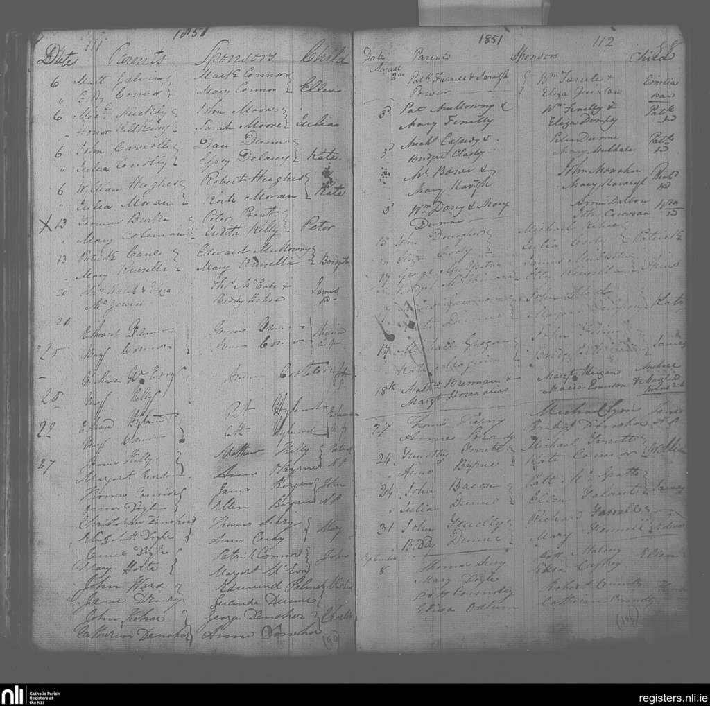 Portarlington; County of Laois, Offaly; Diocese of Kildare and Leighlin. Baptisms, July 1851 to Sep. 1851