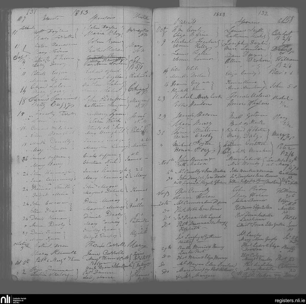 Portarlington; County of Laois, Offaly; Diocese of Kildare and Leighlin. Baptisms, Sep. 1853 to Nov. 1853