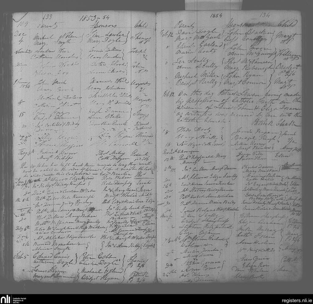 Portarlington; County of Laois, Offaly; Diocese of Kildare and Leighlin. Baptisms, Nov. 1853 to Mar. 1854