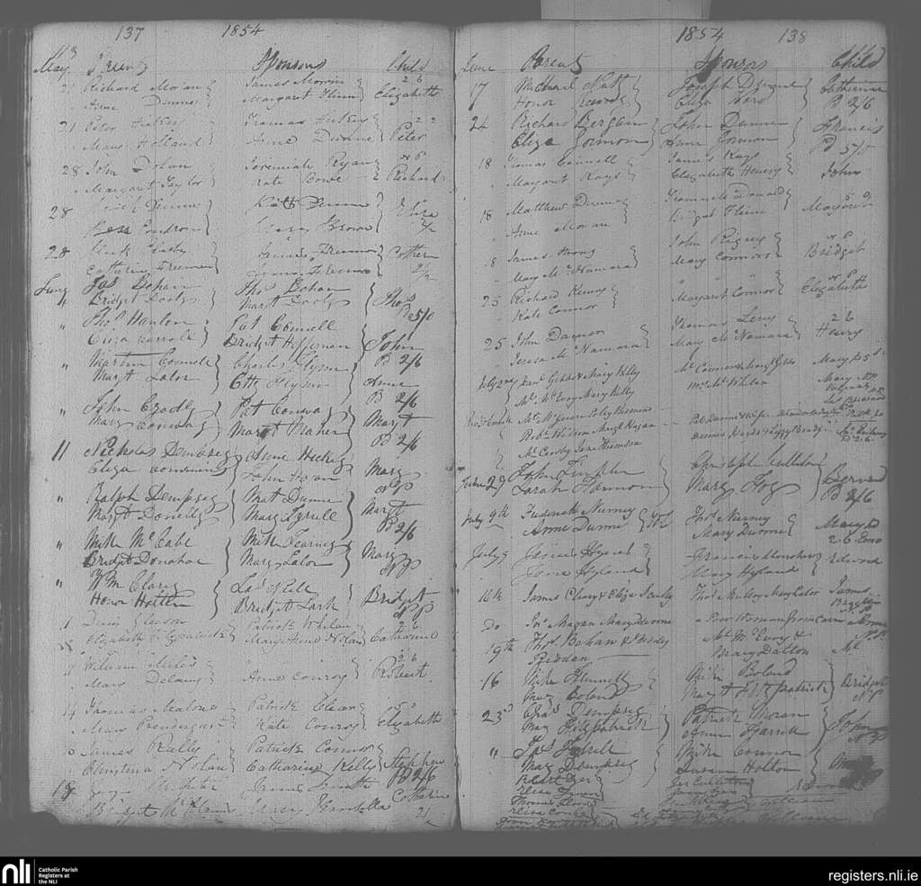 Portarlington; County of Laois, Offaly; Diocese of Kildare and Leighlin. Baptisms, May 1854 to July 1854