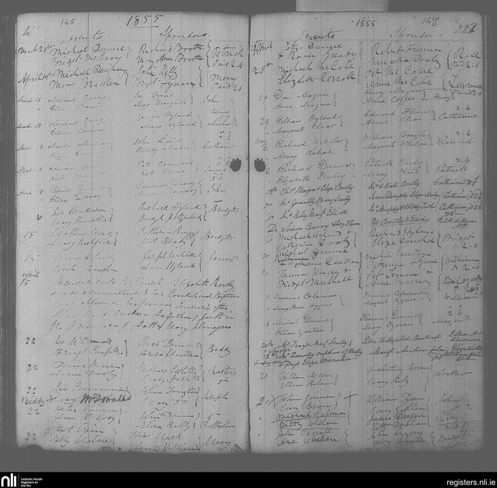 Portarlington; County of Laois, Offaly; Diocese of Kildare and Leighlin. Baptisms, Mar. 1855 to May 1855