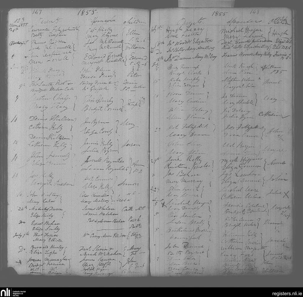 Portarlington; County of Laois, Offaly; Diocese of Kildare and Leighlin. Baptisms, May 1855 to Aug. 1855