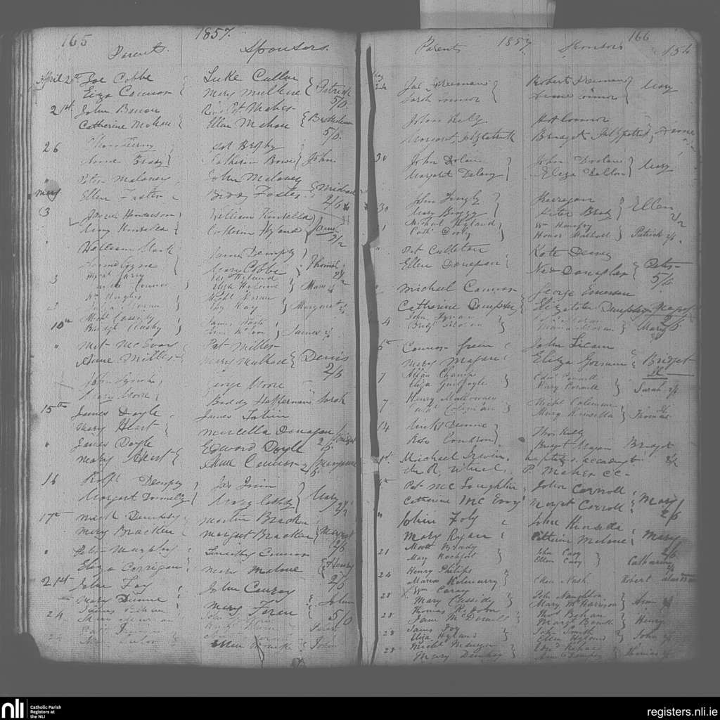 Portarlington; County of Laois, Offaly; Diocese of Kildare and Leighlin. Baptisms, Apr. 1857 to June 1857