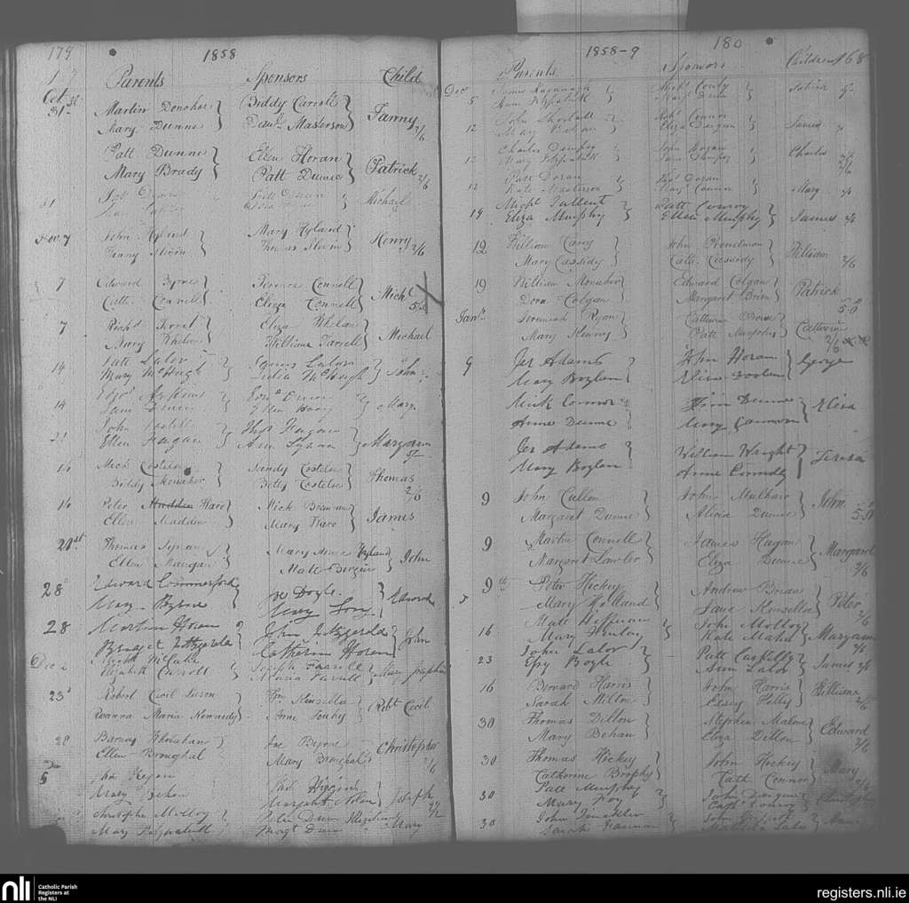 Portarlington; County of Laois, Offaly; Diocese of Kildare and Leighlin. Baptisms, Oct. 1858 to Jan. 1859