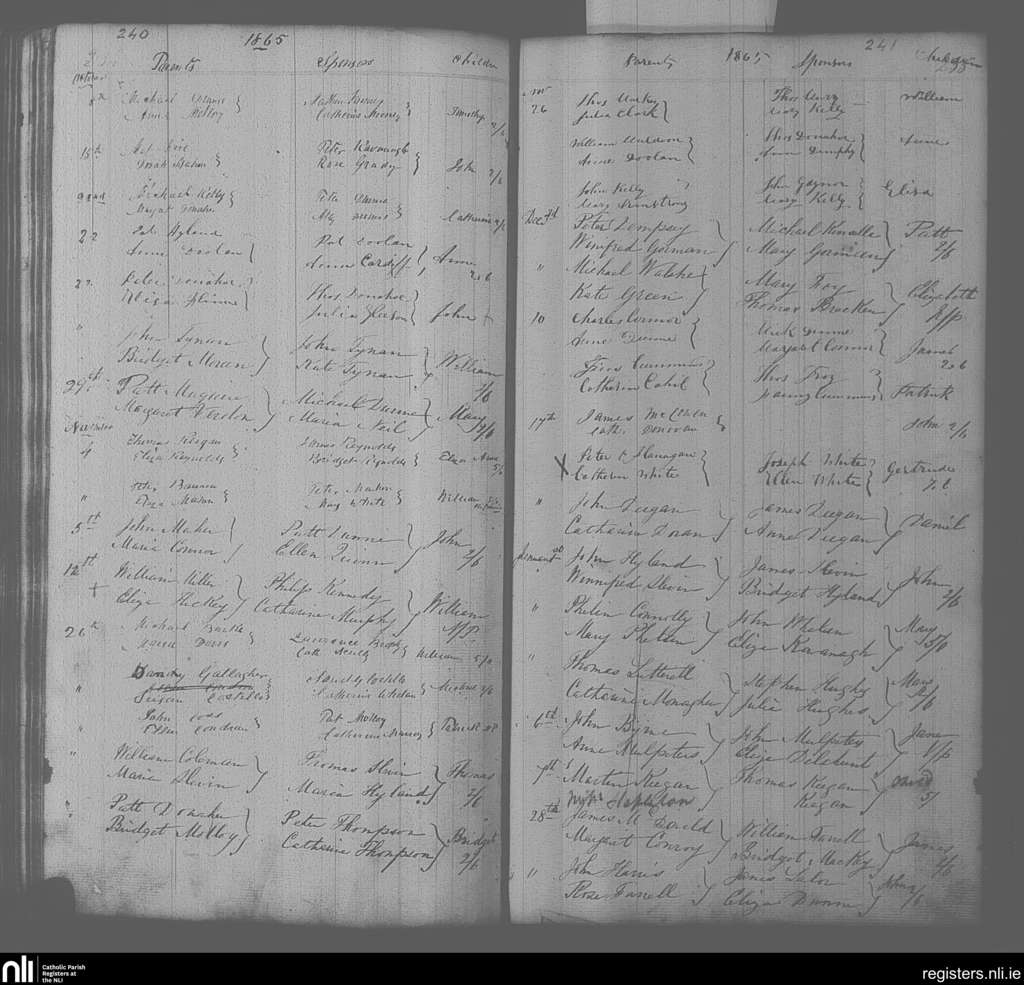 Portarlington; County of Laois, Offaly; Diocese of Kildare and Leighlin. Baptisms, Oct. 1865 to Jan. 1866