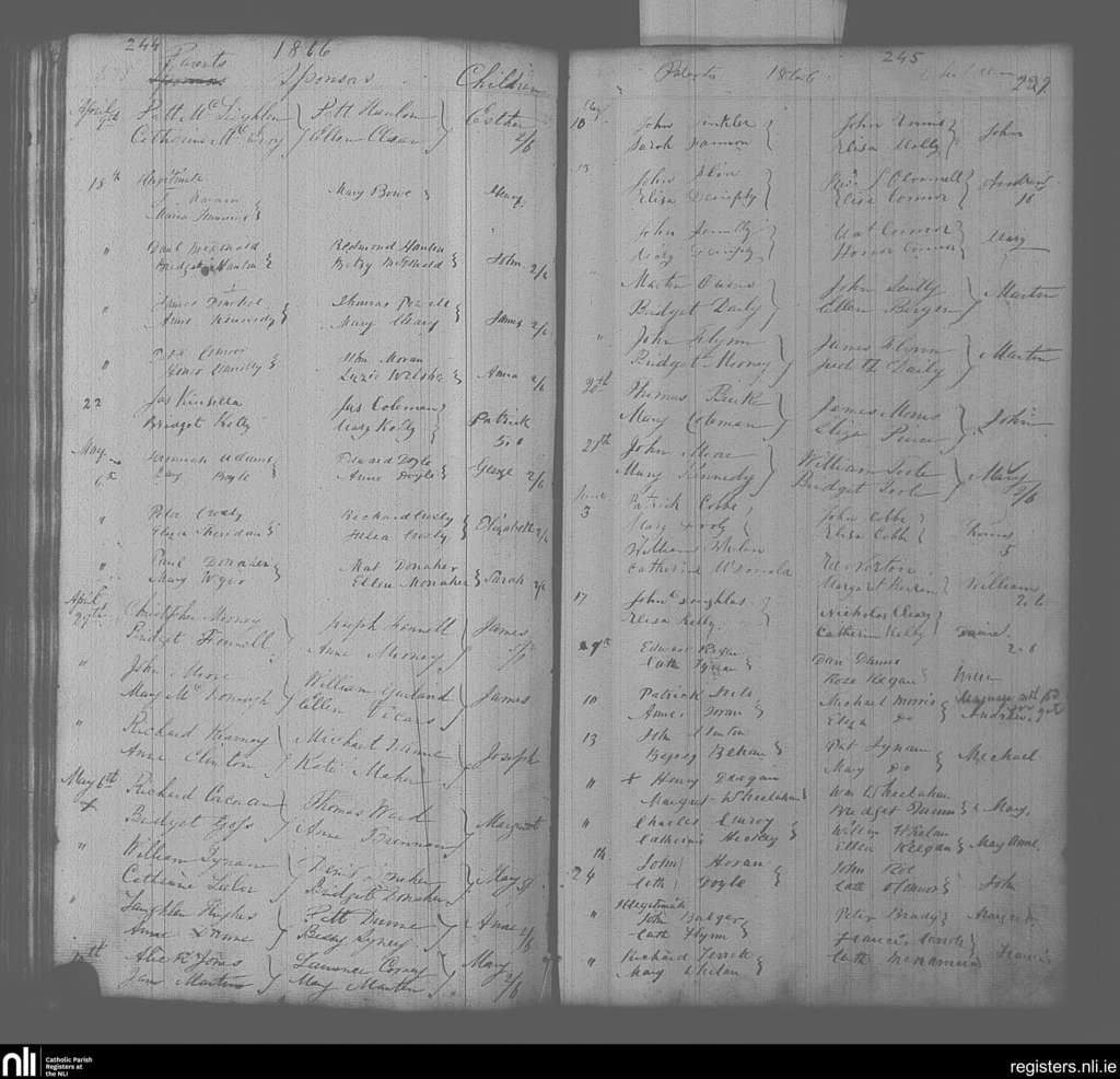 Portarlington; County of Laois, Offaly; Diocese of Kildare and Leighlin. Baptisms, Apr. 1866 to June 1866