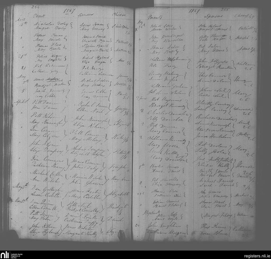 Portarlington; County of Laois, Offaly; Diocese of Kildare and Leighlin. Baptisms, Apr. 1867 to June 1867