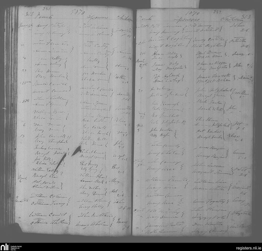 Portarlington; County of Laois, Offaly; Diocese of Kildare and Leighlin. Baptisms, Jan. 1870 to Apr. 1870