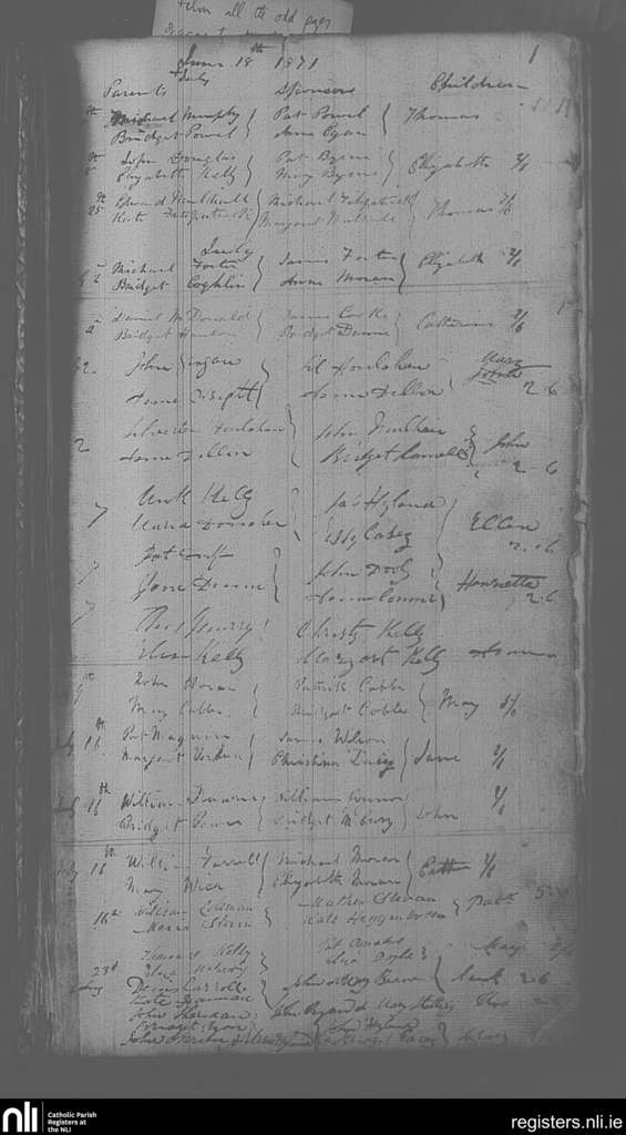 Portarlington; County of Laois, Offaly; Diocese of Kildare and Leighlin. Baptisms, June 1871 to Aug. 1871
