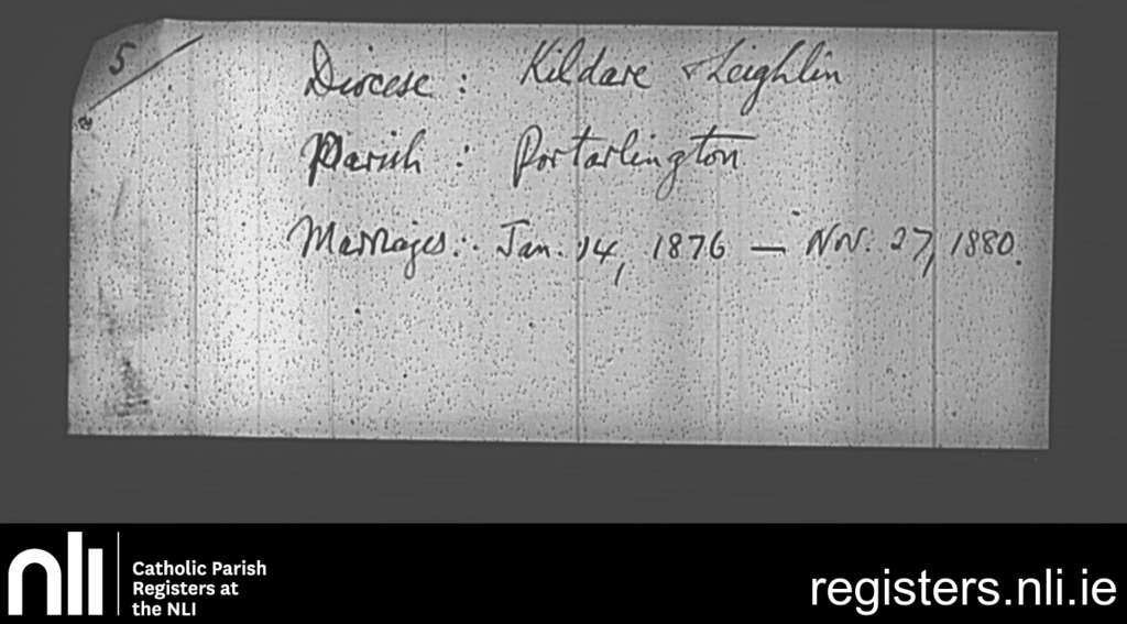 Portarlington; County of Laois, Offaly; Diocese of Kildare and Leighlin. Marriages