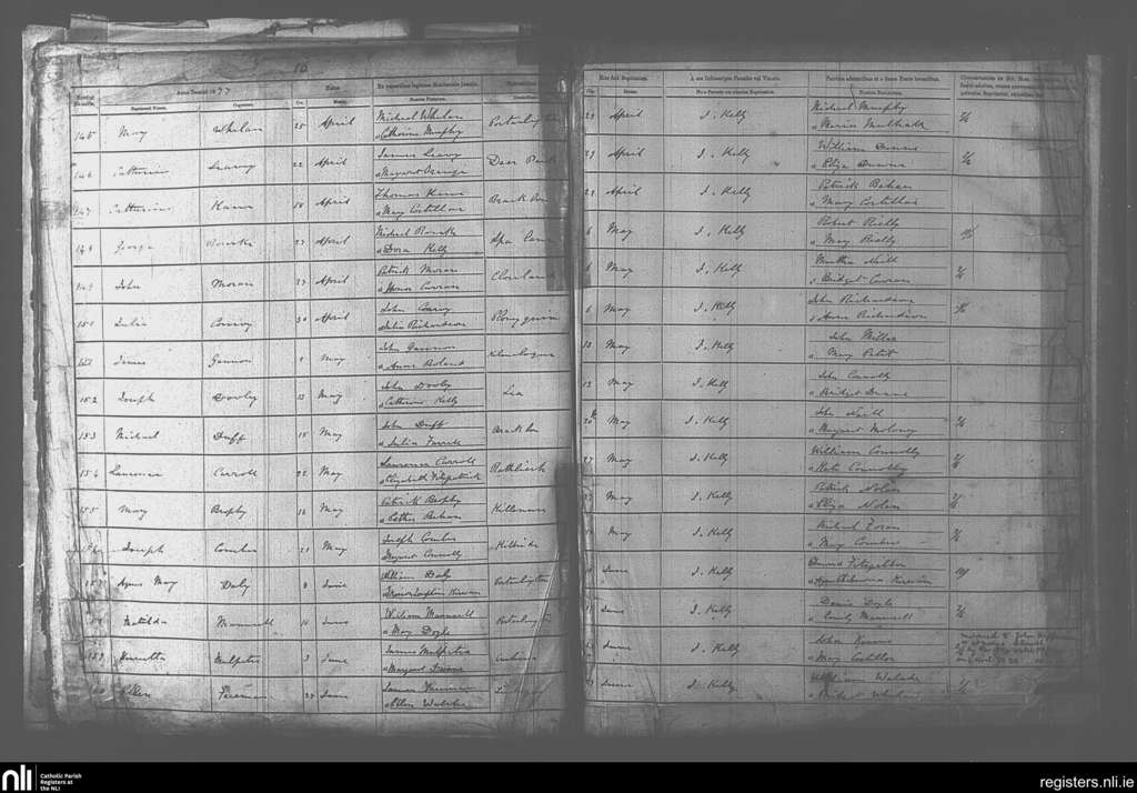 Portarlington; County of Offaly, Laois; Diocese of Kildare and Leighlin. Baptisms, Apr. 1877 to June 1877