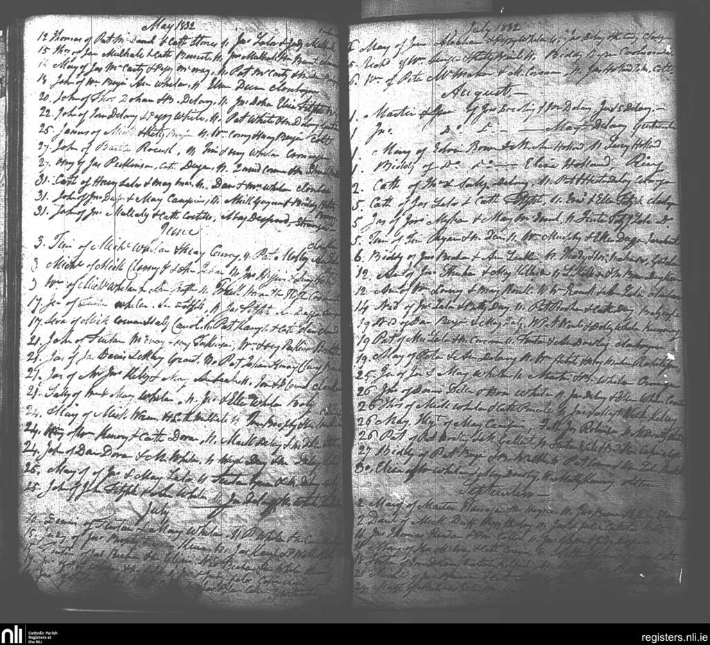 Raheen; County of Laois; Diocese of Kildare and Leighlin. Baptisms, May 1832 to Sep. 1832