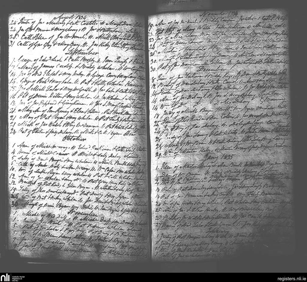 Raheen; County of Laois; Diocese of Kildare and Leighlin. Baptisms, Aug. 1834 to Feb. 1835