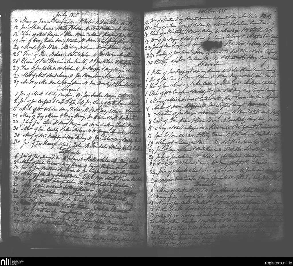 Raheen; County of Laois; Diocese of Kildare and Leighlin. Baptisms, July 1835 to Dec. 1835