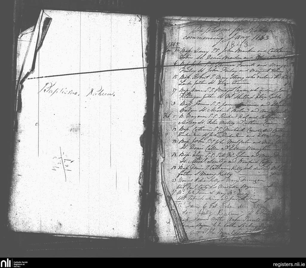 Raheen; County of Laois; Diocese of Kildare and Leighlin. Baptisms, Jan. 1843 to Mar. 1843