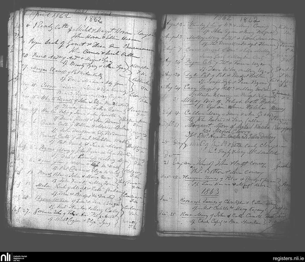 Raheen; County of Laois; Diocese of Kildare and Leighlin. Baptisms, Apr. 1862 to Jan. 1863
