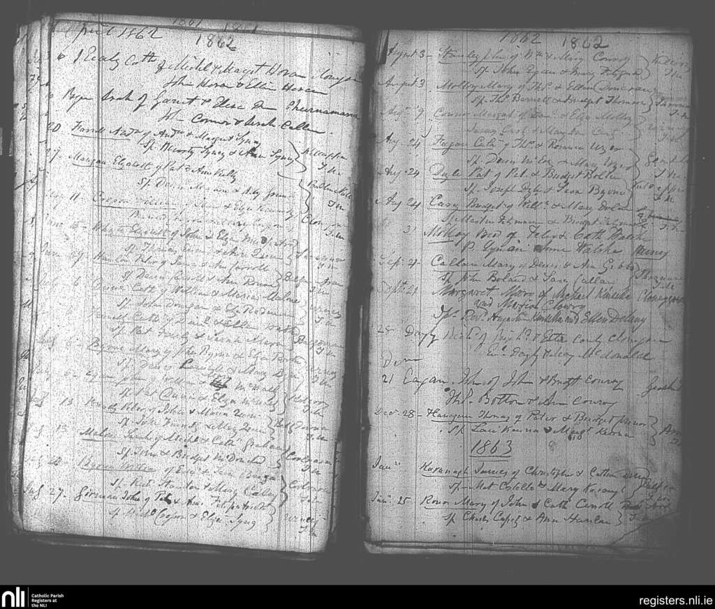 Raheen; County of Laois; Diocese of Kildare and Leighlin. Baptisms, Apr. 1862 to Jan. 1863