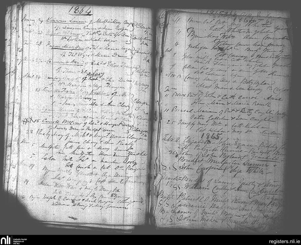 Raheen; County of Laois; Diocese of Kildare and Leighlin. Baptisms, Jan. 1864 to Mar. 1865