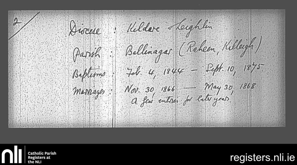 Raheen; County of Laois; Diocese of Kildare and Leighlin. Baptisms, Jan. 1852 to Apr. 1853