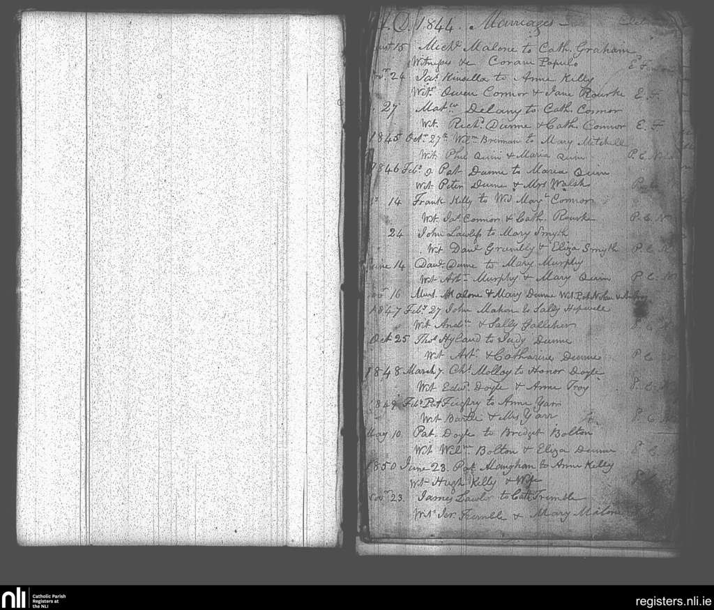 Raheen; County of Laois; Diocese of Kildare and Leighlin. Marriages, Aug. 1844 to Nov. 1850