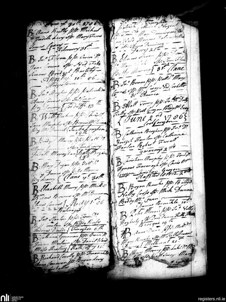 Clane; County of Kildare; Diocese of Kildare and Leighlin. Baptisms, Mar. 1786 to June 1786