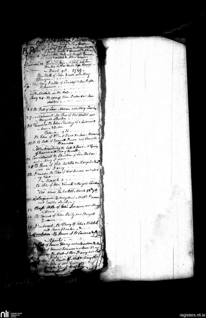 Clane; County of Kildare; Diocese of Kildare and Leighlin. Baptisms, Jan. 1789 to Apr. 1789