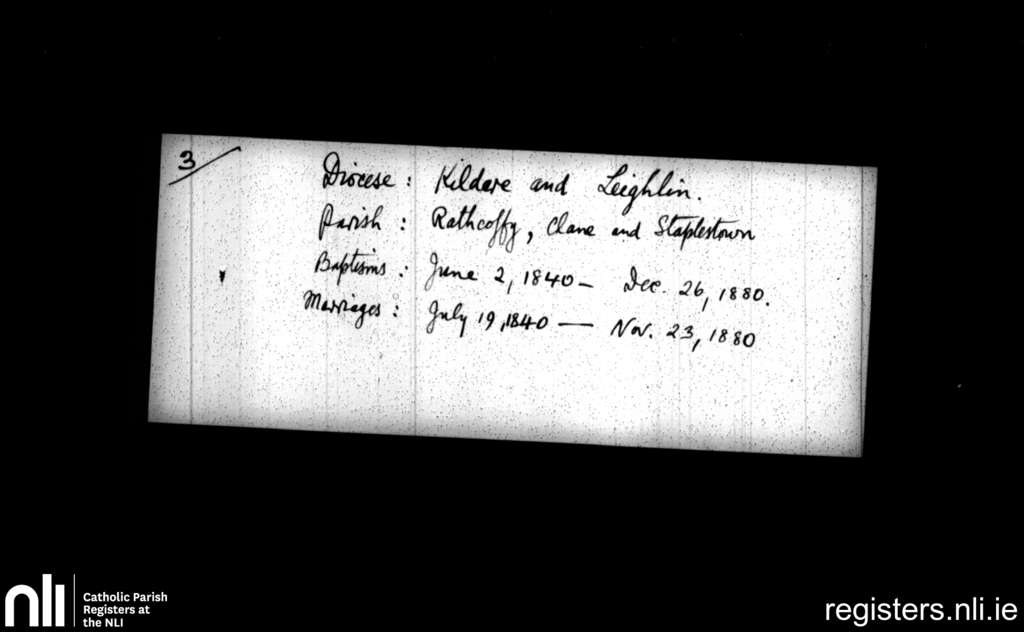 Clane; County of Kildare; Diocese of Kildare and Leighlin. Baptisms, Marriages
