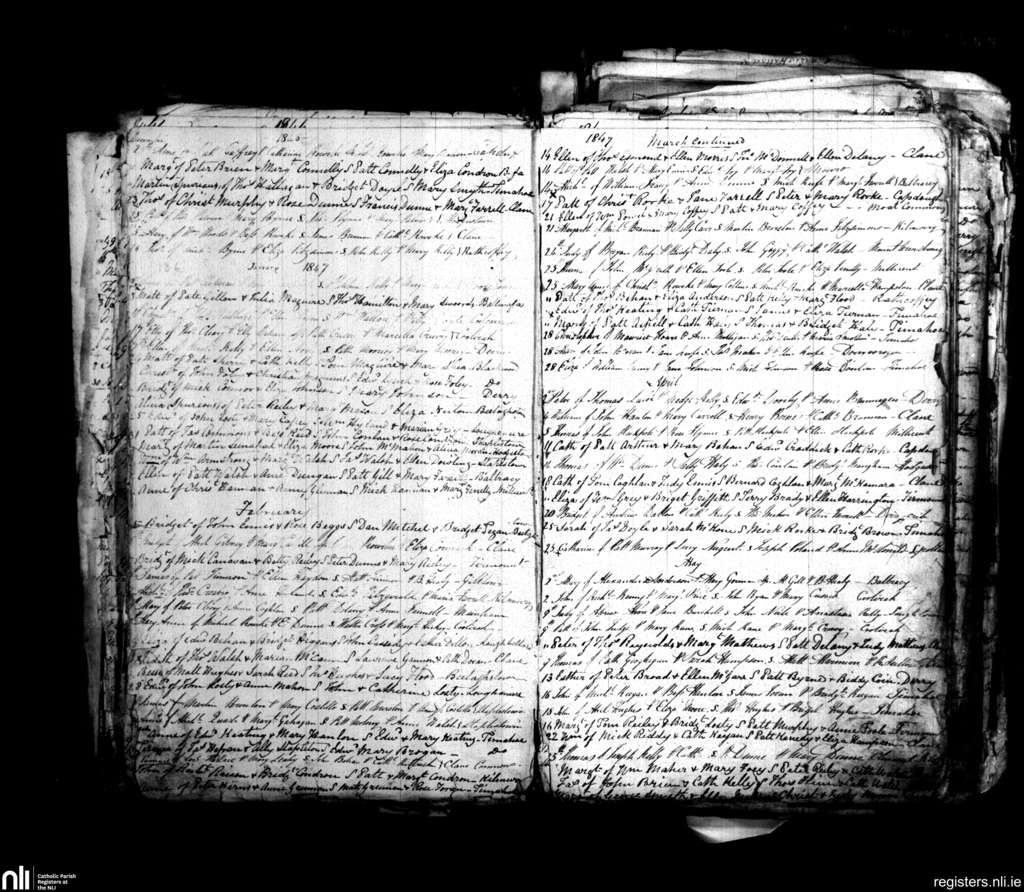 Clane; County of Kildare; Diocese of Kildare and Leighlin. Baptisms, Dec. 1846 to May 1847